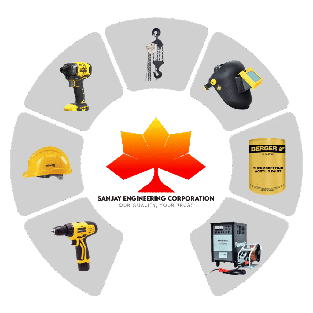 Sanjay Engineering Corporation, established in 2003, is a trusted industrial solutions provider specializing in comprehensive welding equipment and consumables, including gas and arc welding systems, MIG wires, filler rods, and flux. We supply premium industrial safety equipment and PPEs, fire and road safety solutions, high-performance industrial paints, certified lifting tackle and material handling equipment, along with professional-grade power tools and accessories. Backed by our in-house service centre, we deliver end-to-end support ensuring everyday excellence. .